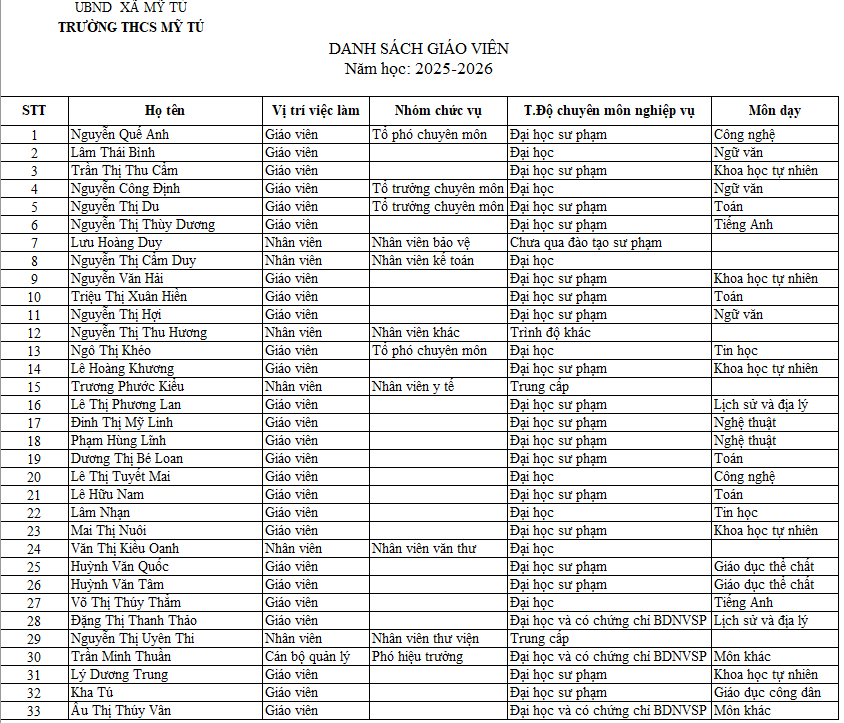 NHÂN SỰ TRƯỜNG THCS MỸ TÚ 2025