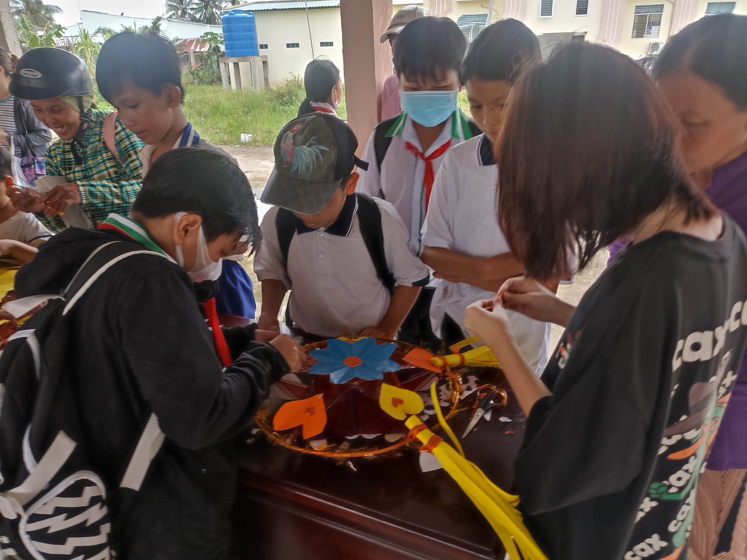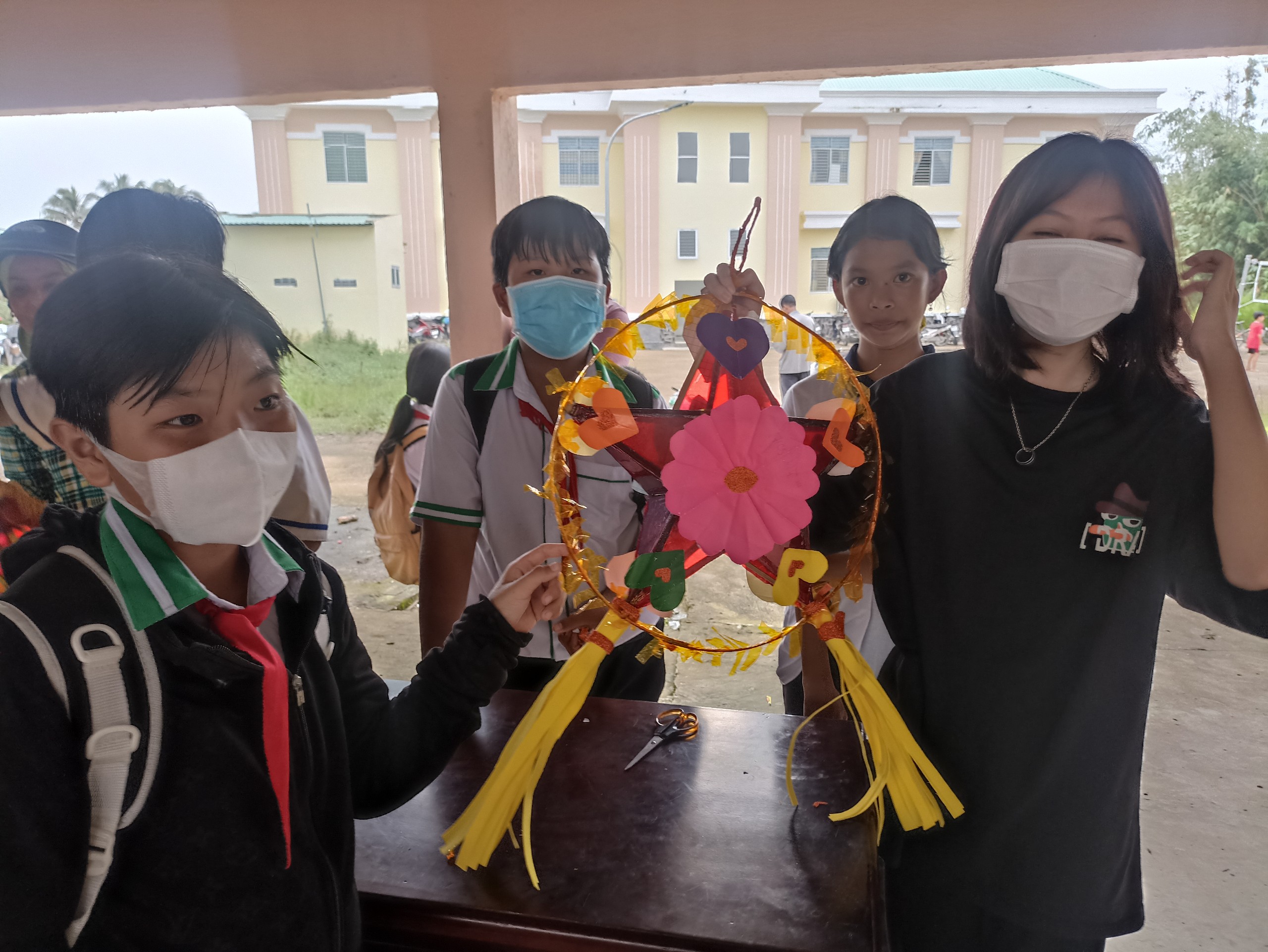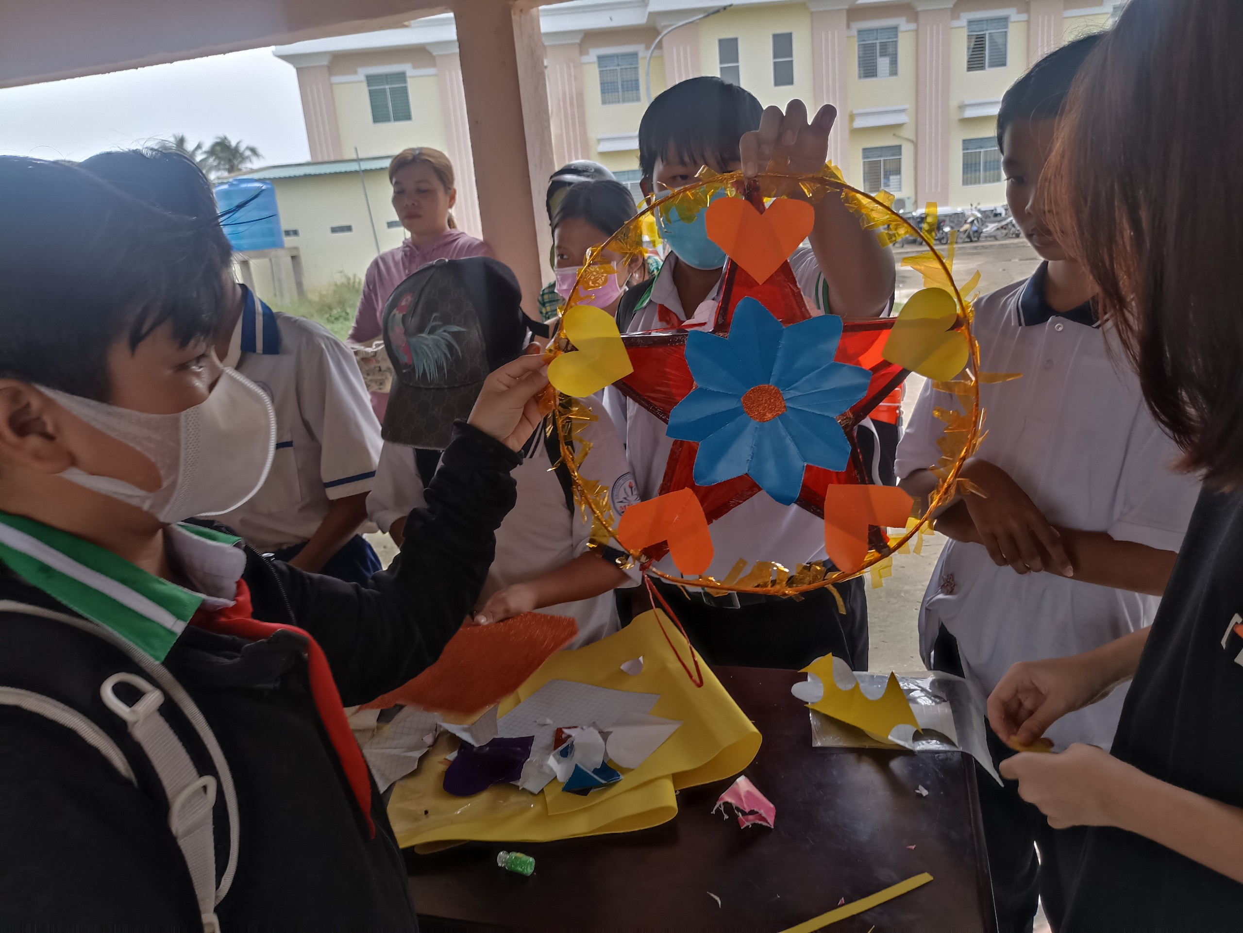 Học sinh tham gia làm lồng đèn