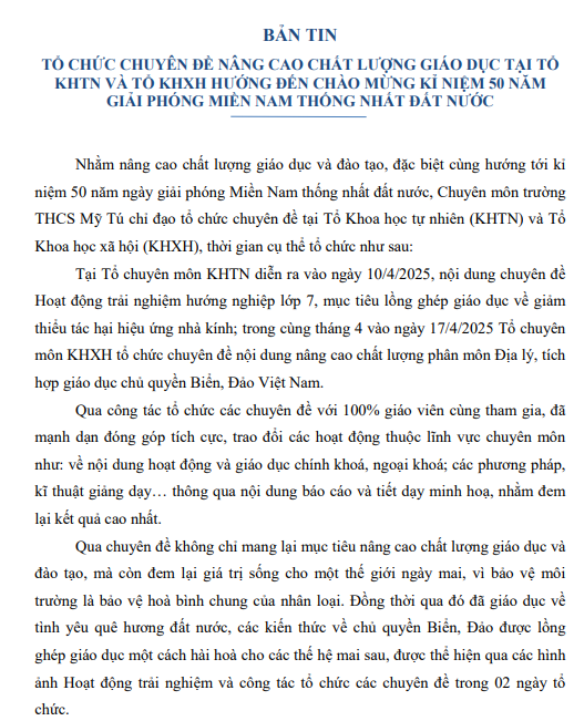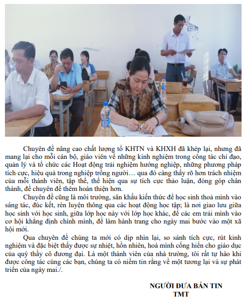 BẢN TIN TỔ CHỨC CHUYÊN ĐỀ NÂNG CAO CHẤT LƯỢNG GIÁO DỤC TẠI TỔ KHTN VÀ TỔ KHXH HƯỚNG ĐẾN CHÀO MỪNG KỈ NIỆM 50 NĂM GIẢI PHÓNG MIỀN NAM THỐNG NHẤT ĐẤT NƯỚC