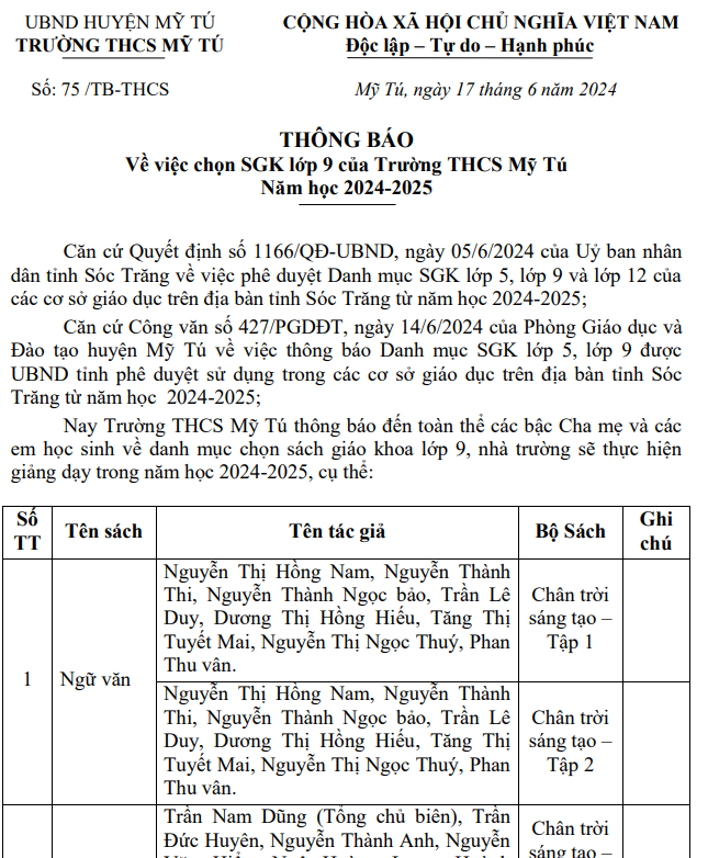 Điện thoại: 0979809292  - Email: thcsmytu.mt@soctrang.edu.vn