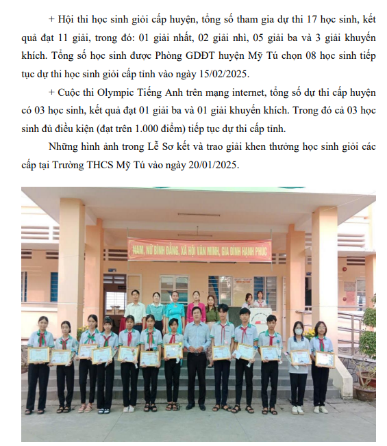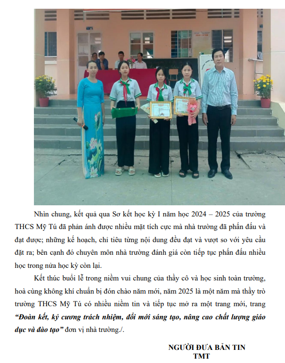 TRƯỜNG THCS MỸ TÚ TỔ CHỨC SƠ KẾT HỌC KỲ I VÀ PHÁT GIẢI KHEN THƯỞNG CÁC PHONG TRÀO HỌC SINH GIỎI