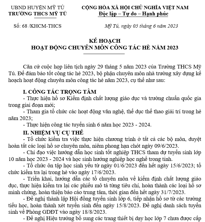 ĐƠN VỊ CHỦ QUẢN: TRƯỜNG THCS MỸ TÚ