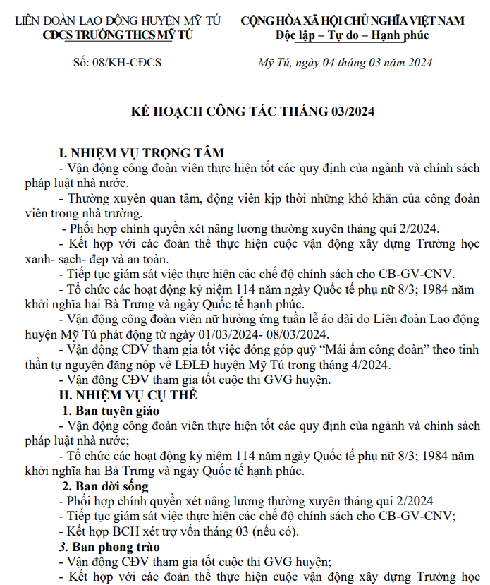 KẾ HOẠCH THÁNG 03/24 CD