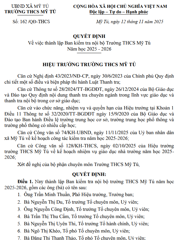 ĐƠN VỊ CHỦ QUẢN: TRƯỜNG THCS MỸ TÚ