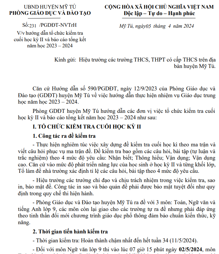 HƯỚNG DẪN THI HỌC KỲ 2 NĂM 2023 -2024