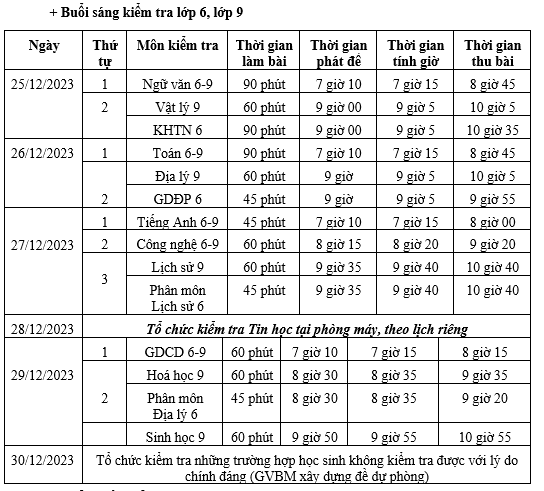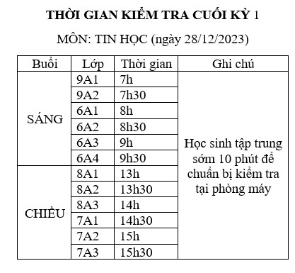 LỊCH THI CÁC MÔN CUỐI KỲ 1