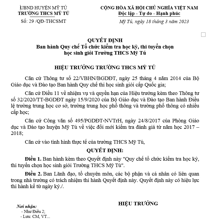 ĐƠN VỊ CHỦ QUẢN: TRƯỜNG THCS MỸ TÚ