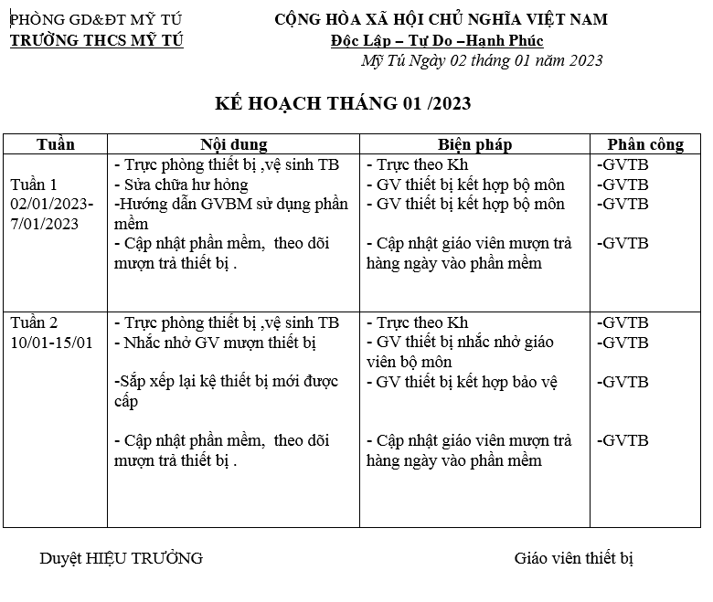 KẾ HOẠCH THÁNG 1 TB