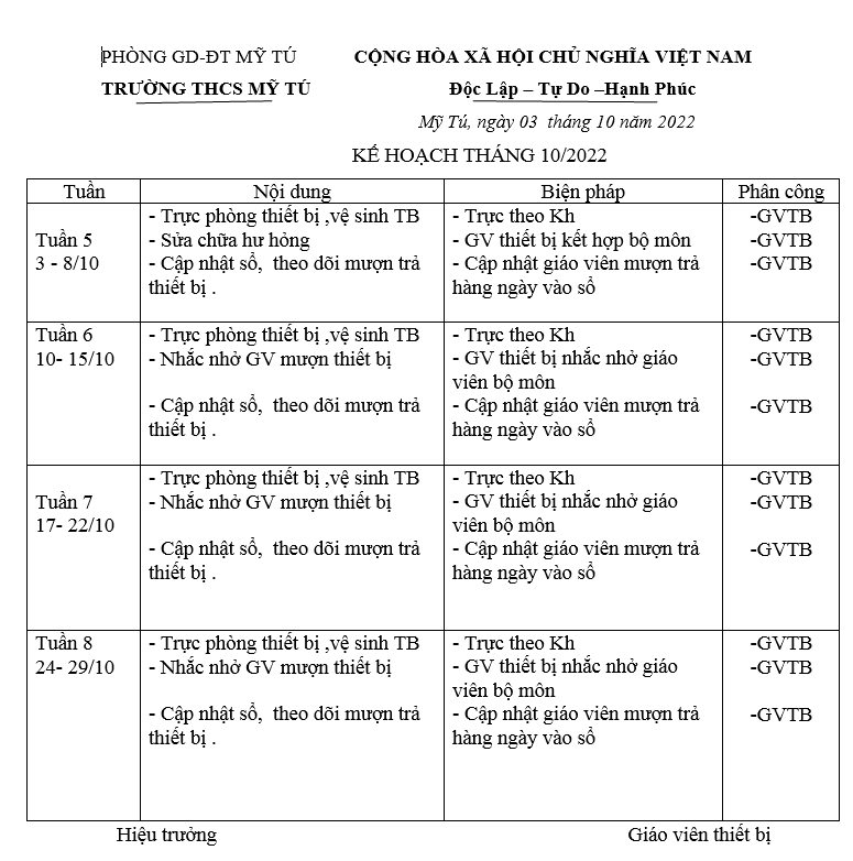 KẾ HOẠCH THÁNG 10 TB