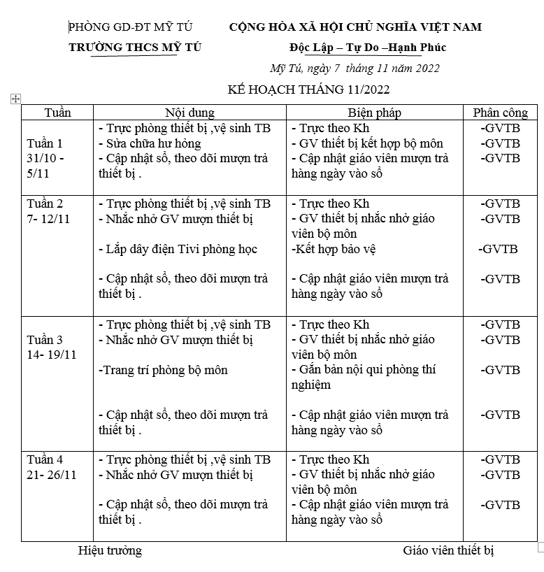 KẾ HOẠCH THÁNG 11 TB
