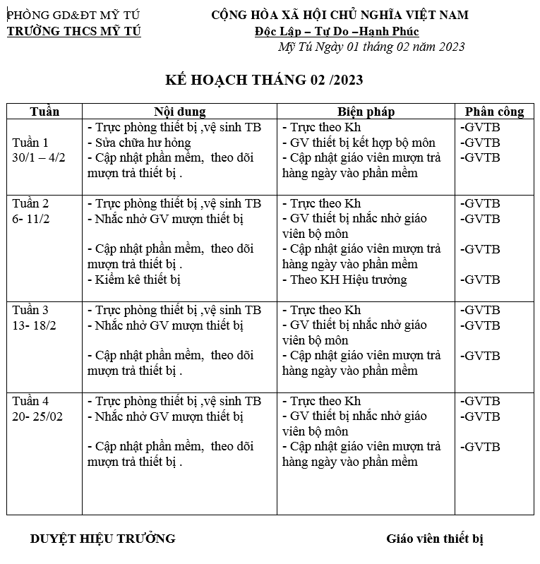 KẾ HOẠCH THÁNG 2 TB