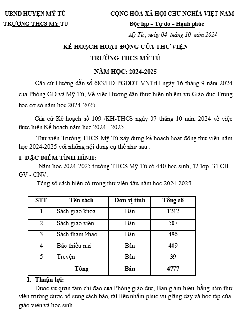 KẾ HOẠCH NĂM 2024-2025 THƯ VIỆN