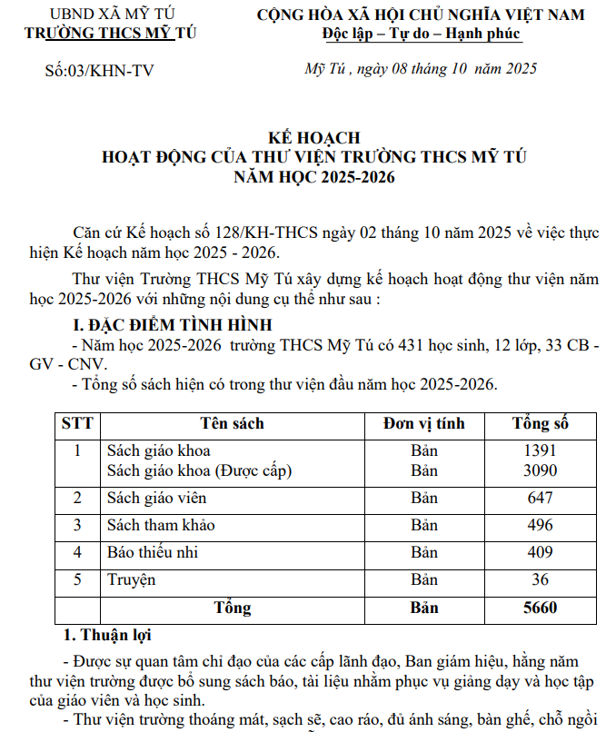 KẾ HOẠCH NĂM 2025-2026 THƯ VIỆN