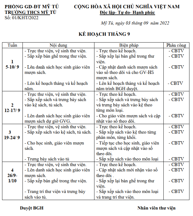KẾ HOẠCH THÁNG 9 TV