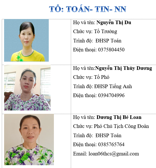 THÀNH VIÊN TỔ TOÁN- TIN- NGOẠI NGỮ
