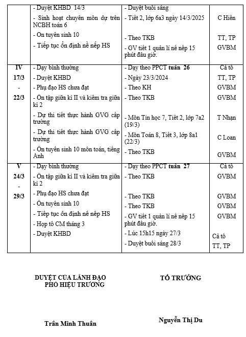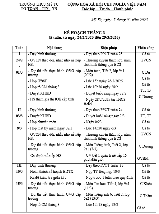KẾ HOẠCH THÁNG 03/2025 TOÁN- TIN -NN