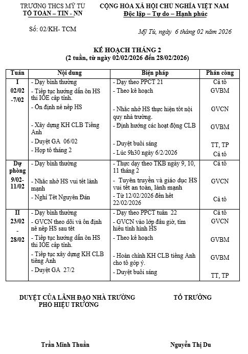 KẾ HOẠCH TỔ TOÁN- TIN- NN THÁNG 02/2026