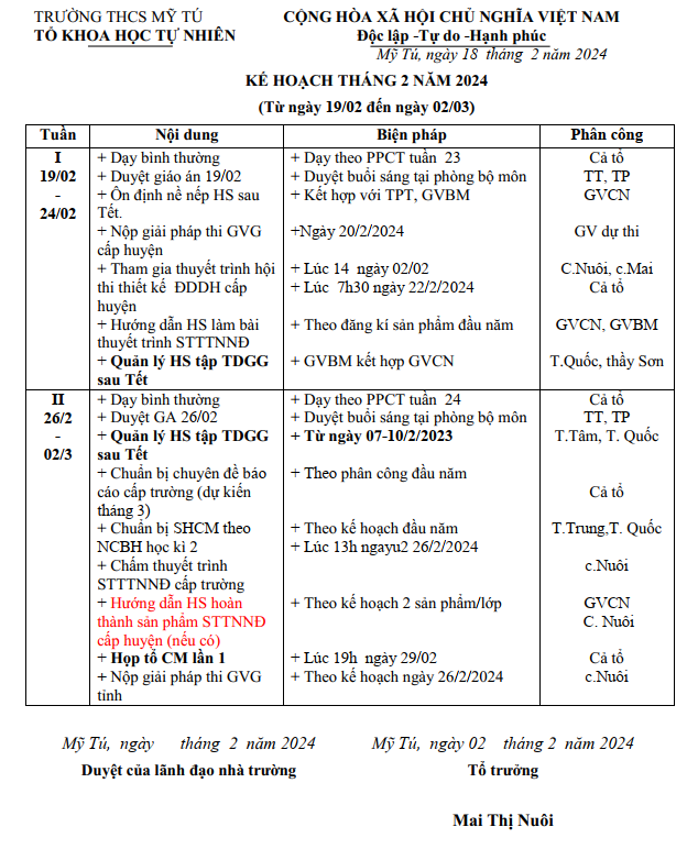 KẾ HOẠCH THÁNG 02/24 TN