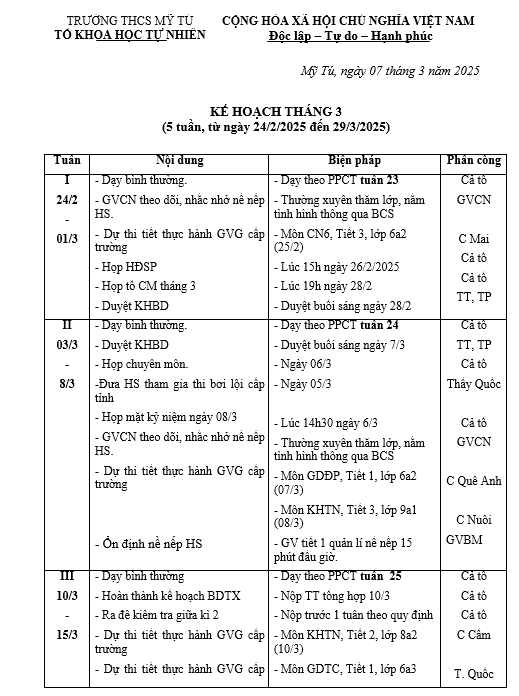 KẾ HOẠCH THÁNG 03/2025 TN