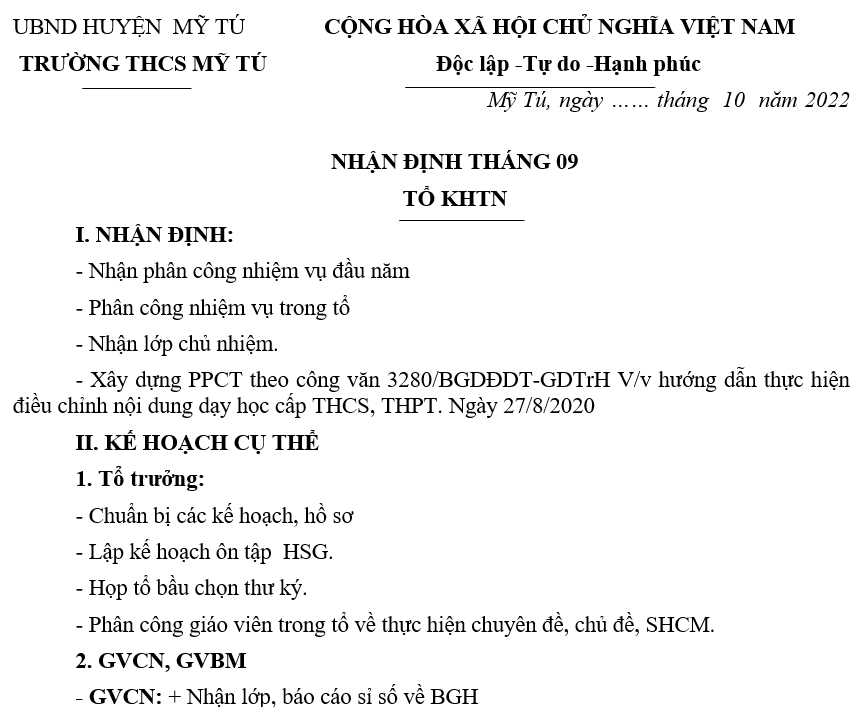 KẾ HOẠCH THÁNG 9/23 TN