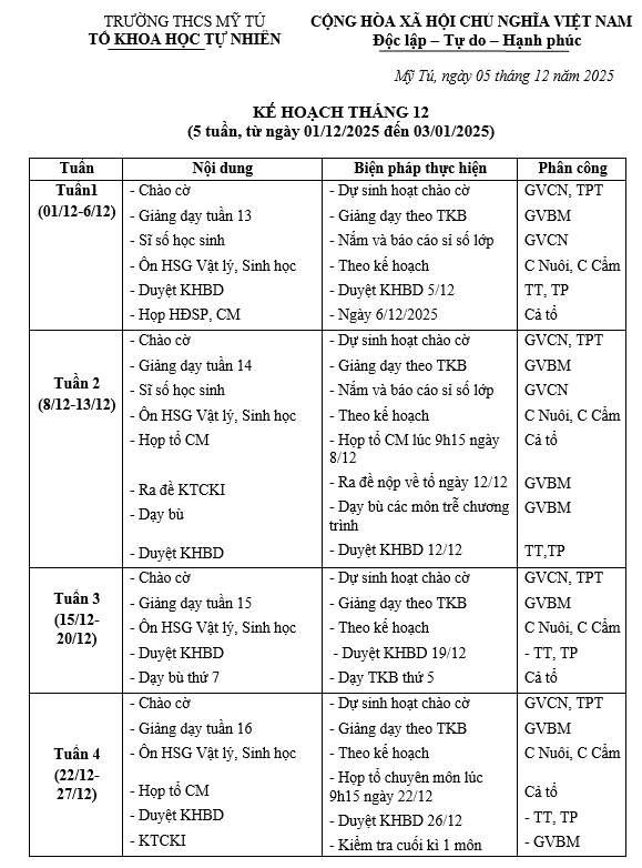 KẾ HOACH TN THANG 12/2025